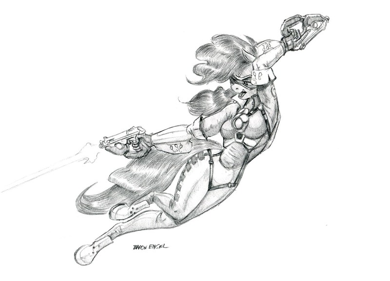 1319388 Safe Artist Baron Engel Derpibooru Import Pinkie Pie Anthro Earth Pony Breasts Busty Pinkie Pie Clothes Crossover Dynamic Pose Female Grayscale Gun Mare Monochrome Overwatch Pencil Drawing Shooting Simple Background Sketch